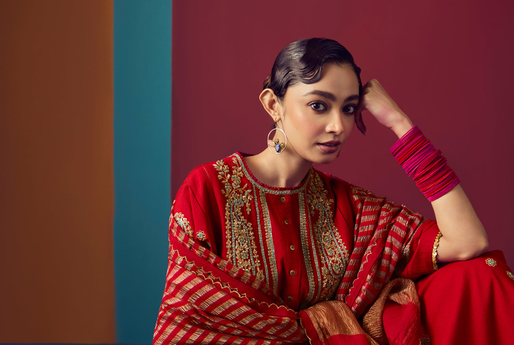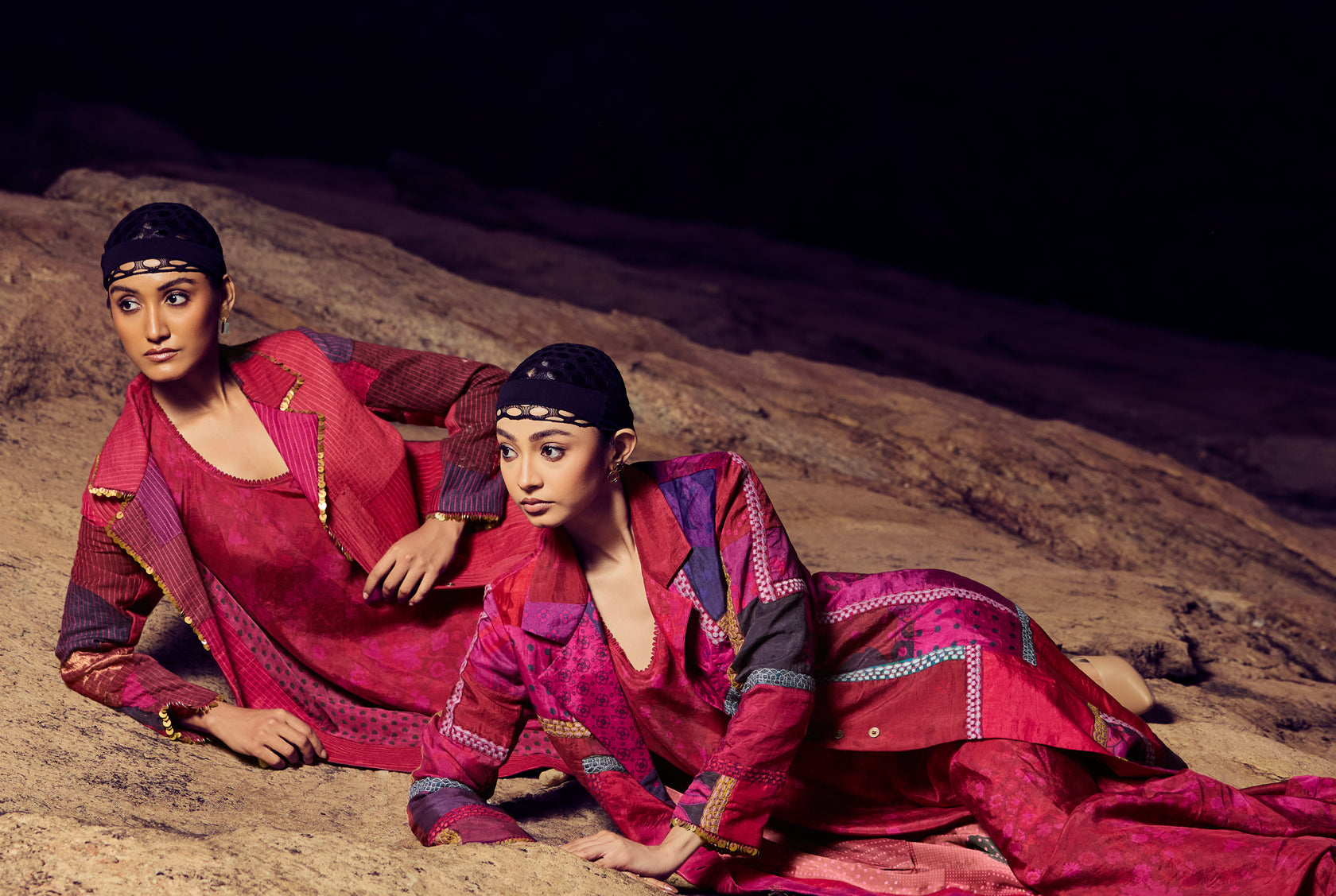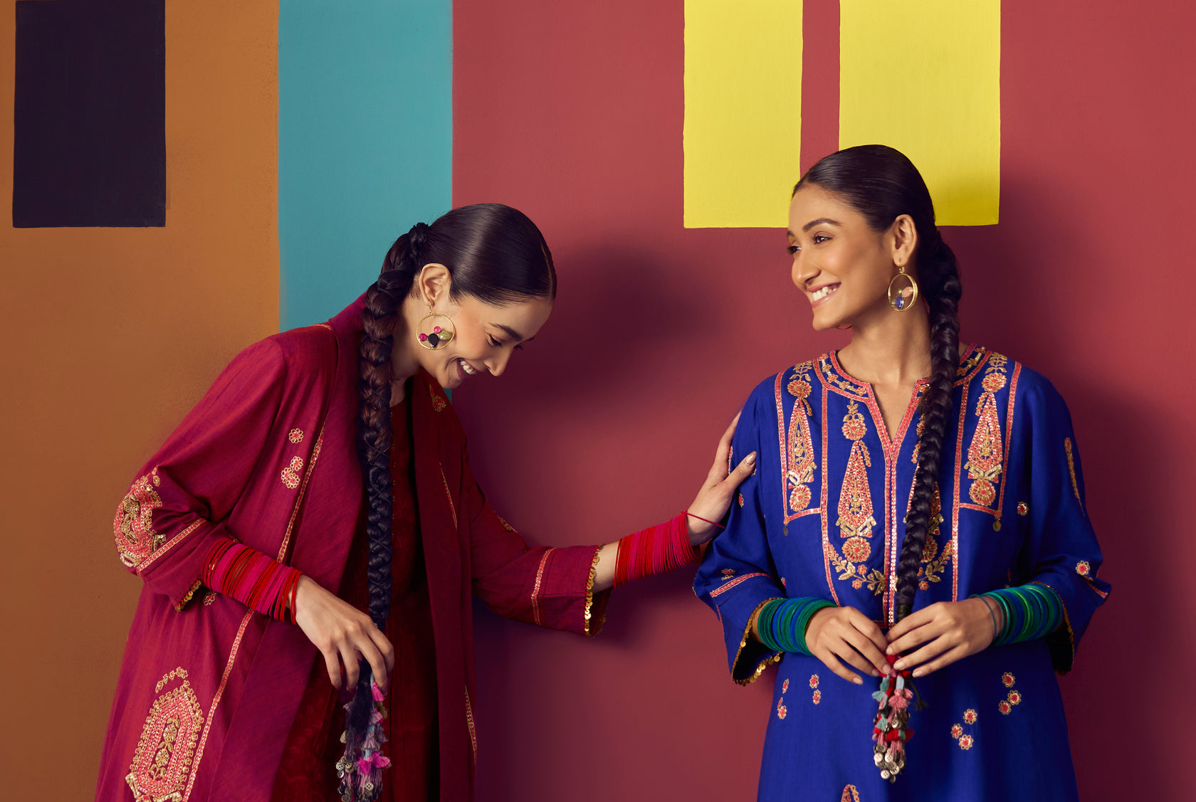 "This Indian wear collection draws inspiration from the vibrant festivities of a "mohalla" — the heart of community life in Indian neighborhoods. Rooted in togetherness, the collection reflects the joy of shared celebrations, where homes glow with diyas, laughter spills into the streets, and traditions are lived collectively. Rich colors, playful prints, and intricate handcrafted details echo rangoli patterns, festive lights, and bustling lanes. Comfortable silhouettes meet festive elegance, celebrating the warmth, culture, and everyday beauty of Indian festivities as experienced in a lively mohalla."