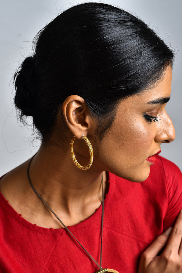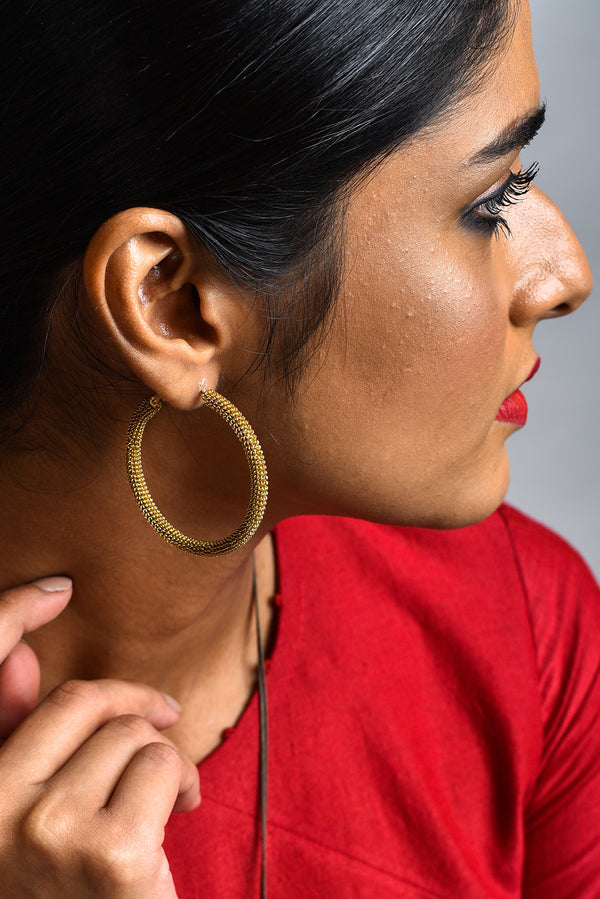 - Brass metal mesh hoop earings
