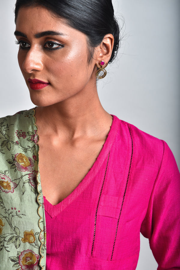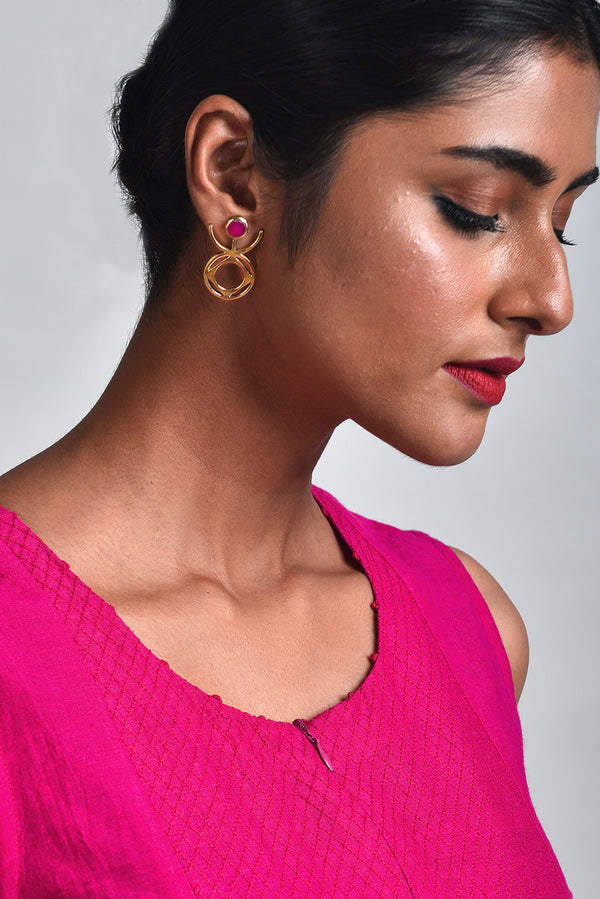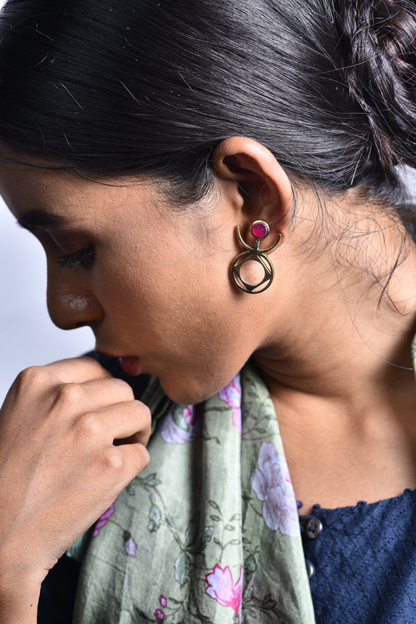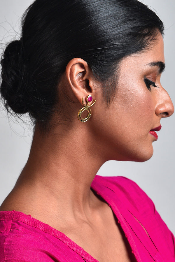 Sigil pink stone brass earrings
