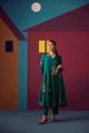 Green hand woven matka silk embroidered A-line kurta set