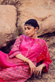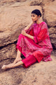 Hot Pink Handwoven & Hand-Printed A-Line Kurta with Kaftan Sleeves and Embroidery, Paired with Pants