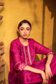 Magenta Handwoven Hand-Printed Mulberry Silk A-Line Kurta with Embroidery, Paired with Pants