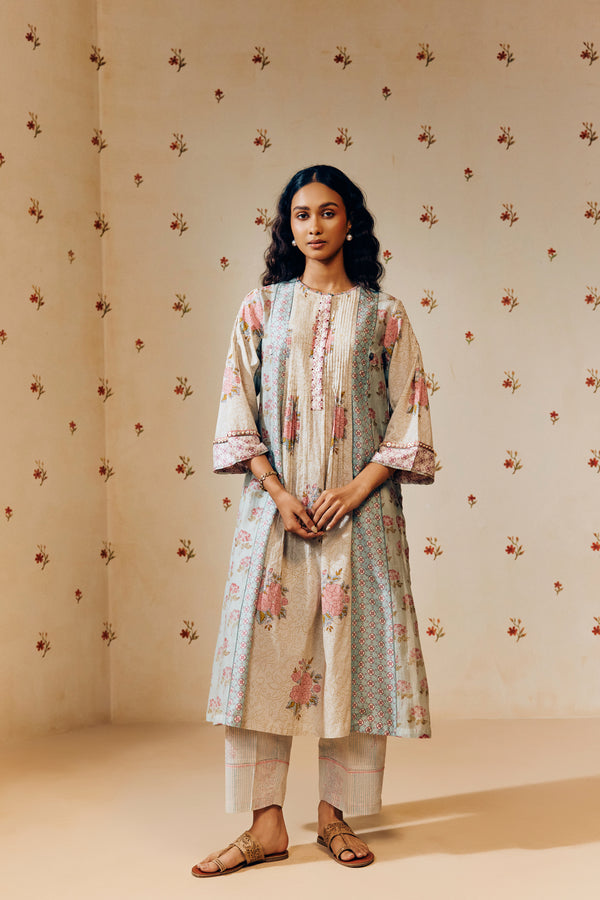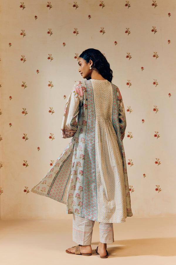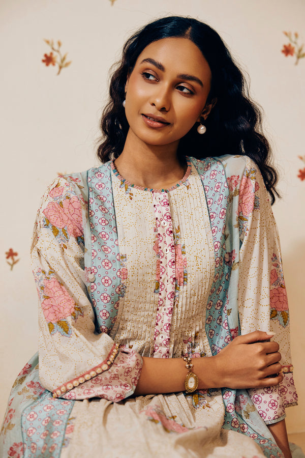 - Enhanced with multi-paneled inserts in mulberry silk and block printed Chanderi